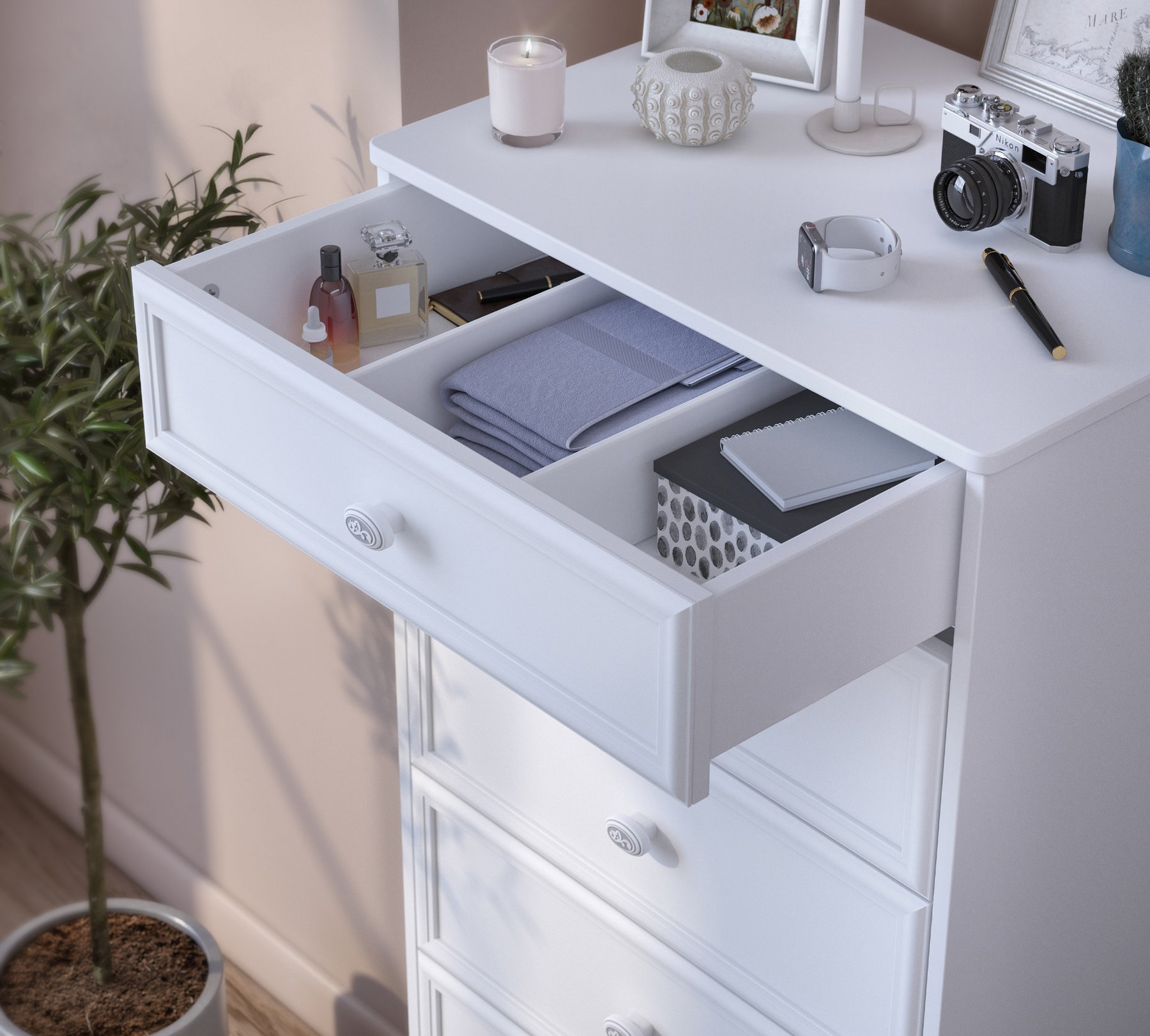 Utilizare confortabilă cu sertarele adânci.
