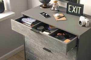 Colectia Space Grey ofera un design modern si functional, perfect pentru camere elegante si bine organizate. Cu finisaje in nuante de gri, aceasta colectie imbina stilul contemporan cu utilitatea, creand un spatiu confortabil si rafinat pentru odihna si activitati. Alege eleganta practica!