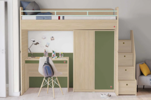 Pretul afisat nu include partea de baza a patului supraetajat, biroul, dulapul, scara, patul suplimentar, montajul, salteaua si accesoriile din imaginea de prezentare a produsului.