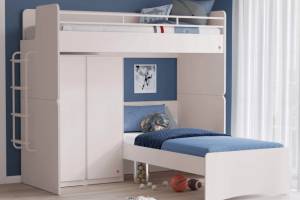 Pretul afisat nu include partea de baza a patului supraetajat, biroul, dulapul, scara, patul suplimentar, montajul, salteaua si accesoriile din imaginea de prezentare a produsului.