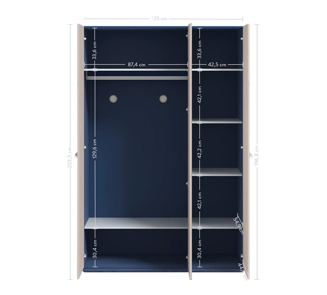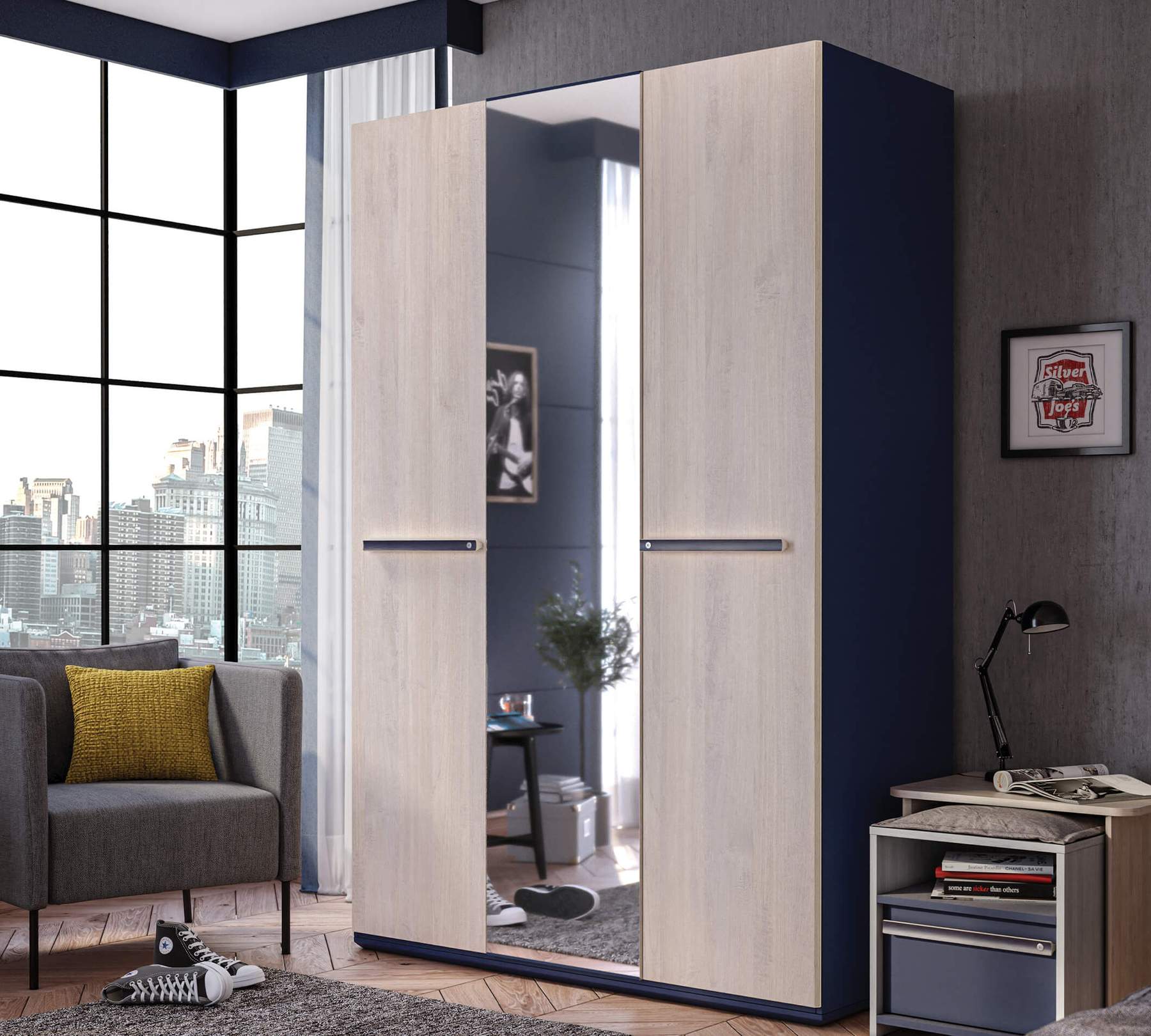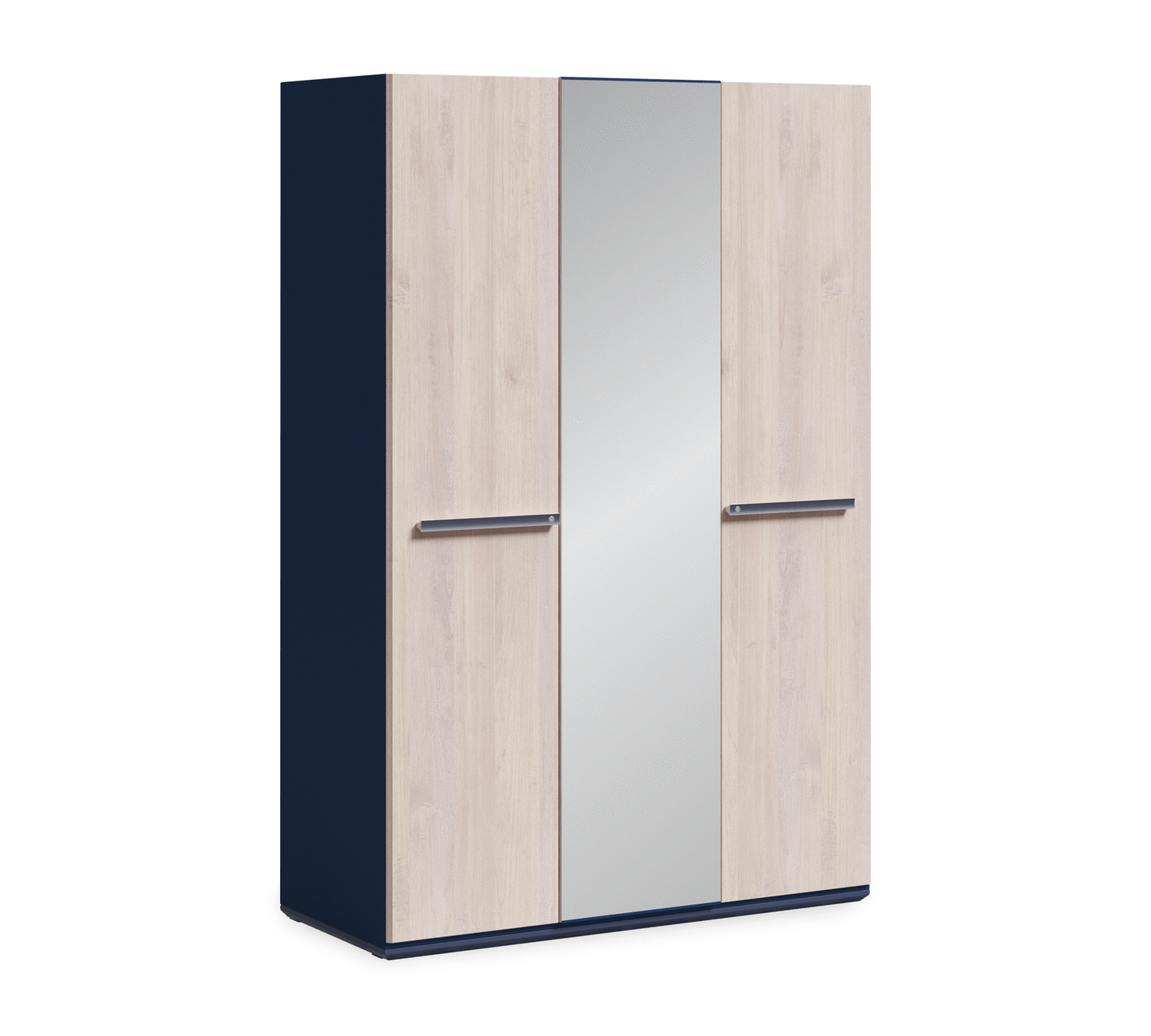 Colectia Trio: dormitor modern în nuanțe de natur/ albastru inchis cu finisaje de lemn, perfect pentru un stil contemporan. Designul simplu, dar funcțional, oferă confort și organizare, adaptându-se nevoilor adolescentului tău. Creează un spațiu armonios și personalizat!