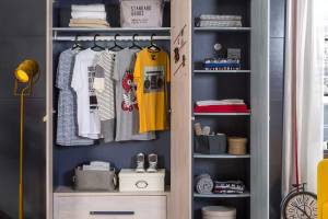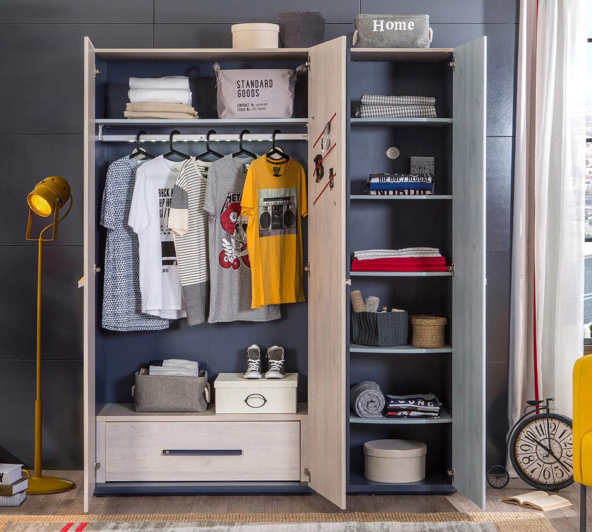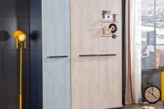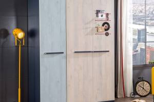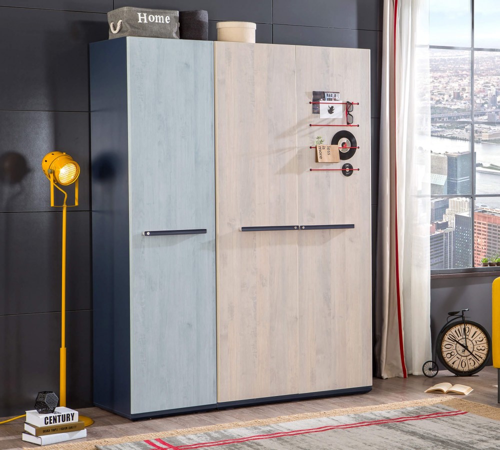 Colectia Trio: dormitor modern în nuanțe de albastru deschis, perfect pentru un stil contemporan. Designul simplu, dar funcțional, oferă confort și organizare, adaptându-se nevoilor adolescentului tău. Creează un spațiu armonios și personalizat!