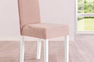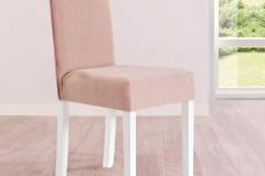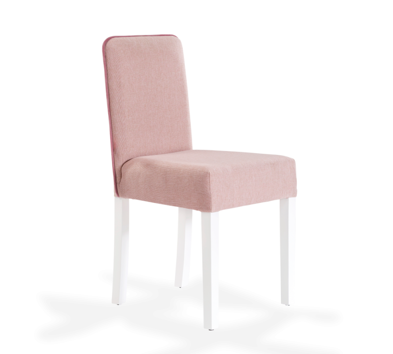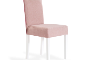 Scaunul este tapitat cu material textil.