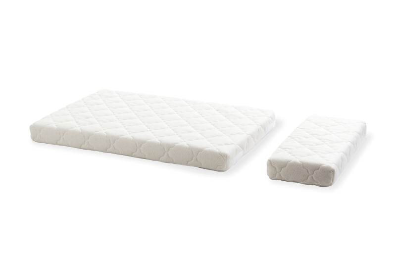Salteaua este formata din 2 parti: Piesa mare care se poate folosi doar cand patutul este pentru bebelus, piesa mica care se adauga cand patutul devine pat pentru copil.
