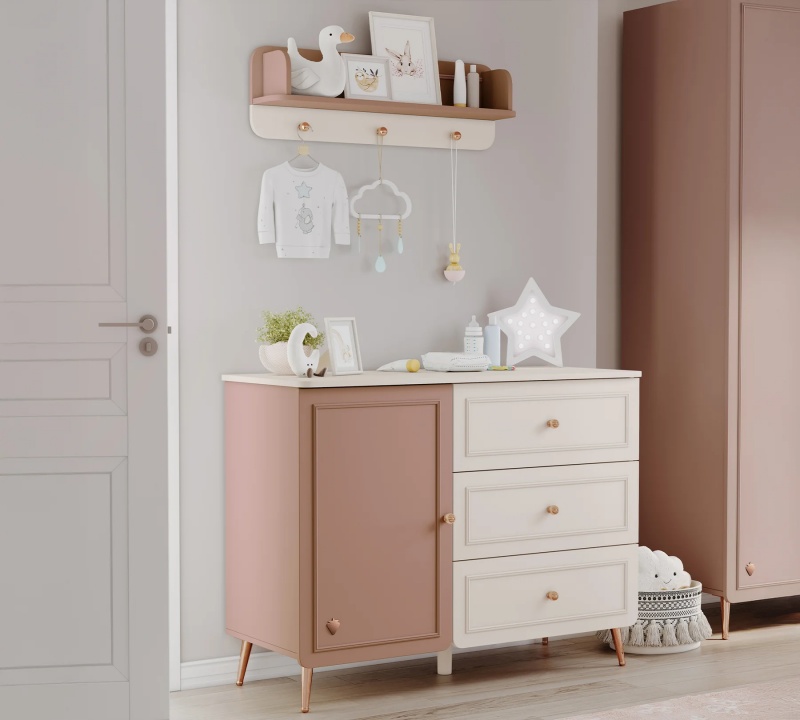 Colecția ELEGANCE BABY impresionează prin designul său elegant și atemporal, în nuanțe de roz pudrat închis. Creată pentru a adăuga un plus de sofisticare și rafinament în camera bebelușului, această colecție oferă mobilier practic și estetic, perfect pentru un decor modern și primitor. Ideală pentru un dormitor deosebit, plin de stil!