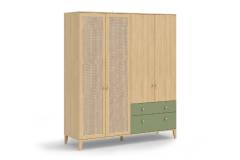 Rafturile și umerașele din garderobă sunt concepute în funcție de înălțimea copilului, de raporturi de vârstă și cu un sistem mobil aleatoriu în trei etape.