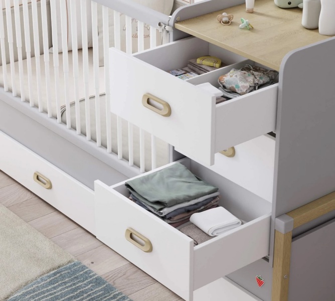 Patut MINO BABY - design modern si functionalitate pentru confortul bebelusului tau! Realizat din materiale de calitate, cu spatii de depozitare integrate, este perfect pentru a economisi spatiu si a organiza camera copilului. Alege acum stilul practic si elegant MINO BABY!