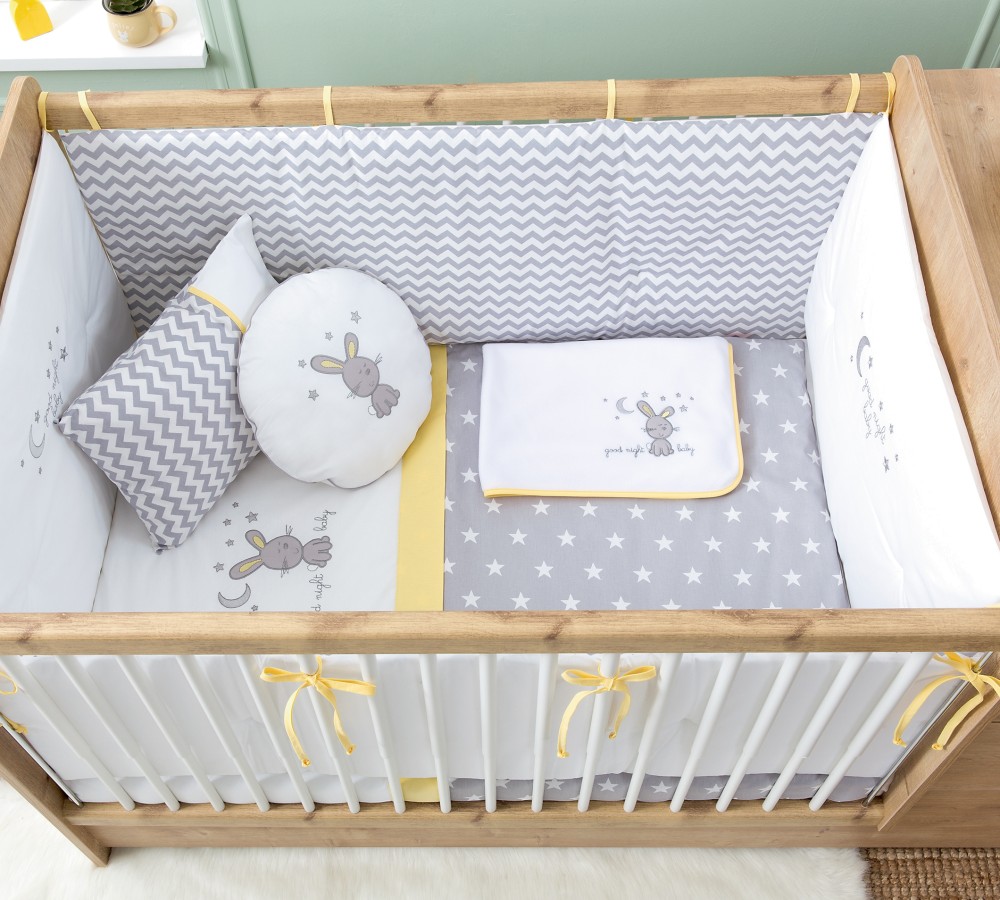 Set patut HAPPY NIGHT - confort si siguranta pentru somnul bebelusului tau! Fabricat din materiale de calitate: textil 100% bumbac moale si umplutura 100% poliester, acest set ofera un somn lin si un decor elegant. Perfect pentru nopti fericite!