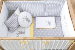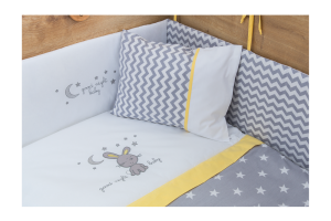 Set patut HAPPY NIGHT - confort si siguranta pentru somnul bebelusului tau! Fabricat din materiale de calitate: textil 100% bumbac moale si umplutura 100% poliester, acest set ofera un somn lin si un decor elegant.