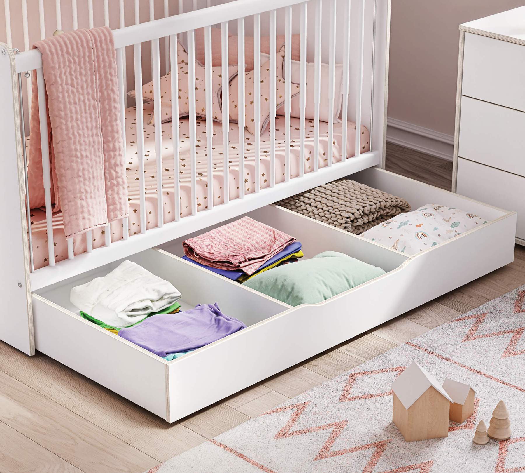 Spatiu pentru depozitare (70x140cm) MONTES WHITE potrivit pentru patutul (70x140cm) MONTES WHITE