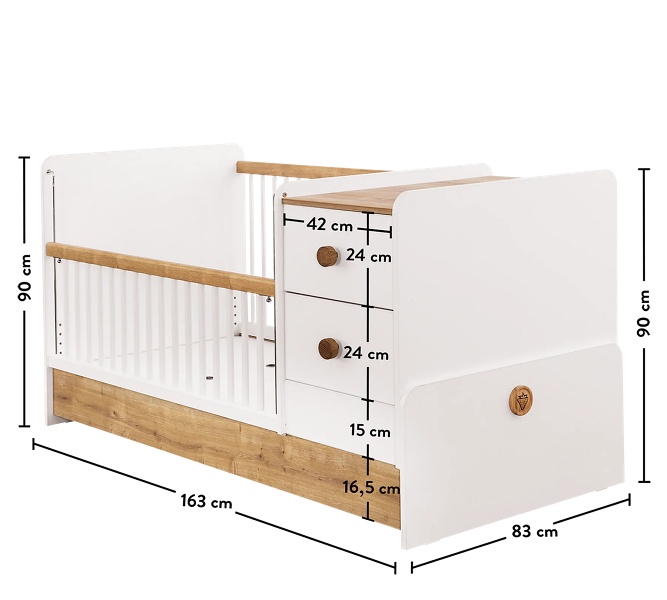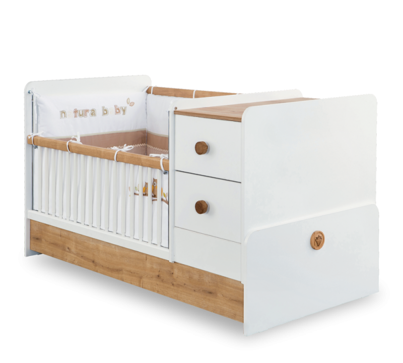 Patutul transformabil NATURA BABY are o utilitate indelungata putand fi transformat in pat pentru o persoana si o comoda cu sertare.