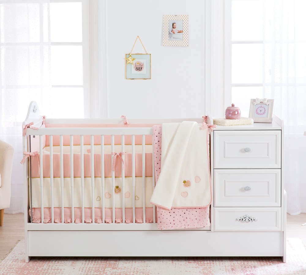 Set patut QUEEN - confort regal pentru bebelusul tau! Realizat din materiale de calitate: textil 100% bumbac moale si umplutura 100% poliester, ofera siguranta si un somn linistit. Design elegant, perfect pentru a crea un spatiu rafinat.