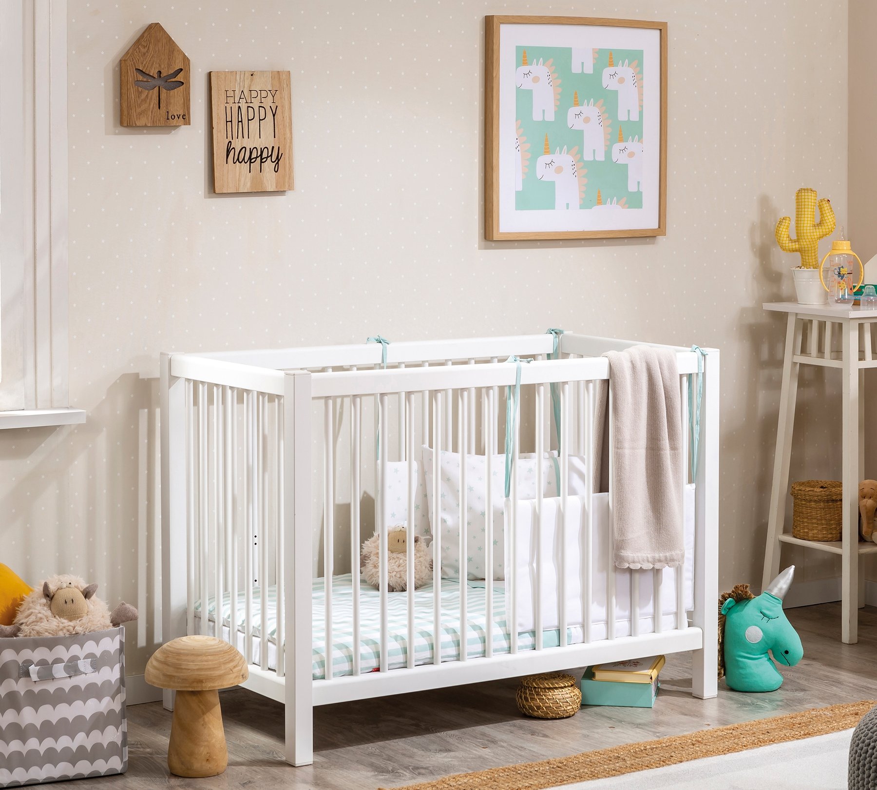Marginile rotunjite ale patutului vor proteja copilul de accidentari pentru a avea un somn cat mai linistit.