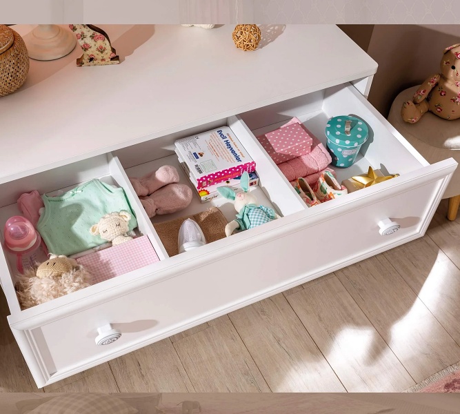 Colțurile comodei sunt rotunjite pentru siguranta copilului.