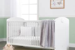 Set patut BABY COTTON - confort natural si design modern pentru bebelusul tau! Include patut din lemn de calitate si saltea moale, realizate din materiale sigure: textil 100% bumbac si umplutura 100% poliester. Ideal pentru somn lin si un decor elegant.