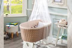 Patutul din pal cu sistem de leganare este potrivit pentru bebelusi pana la 6 luni.