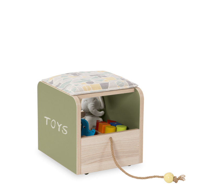 Cele doua parti laterale de culoare verde ale taburetului, au fost concepute astfel incat cel mic sa-si poata destinde imaginatia prin desen.