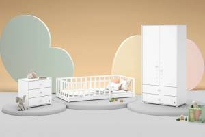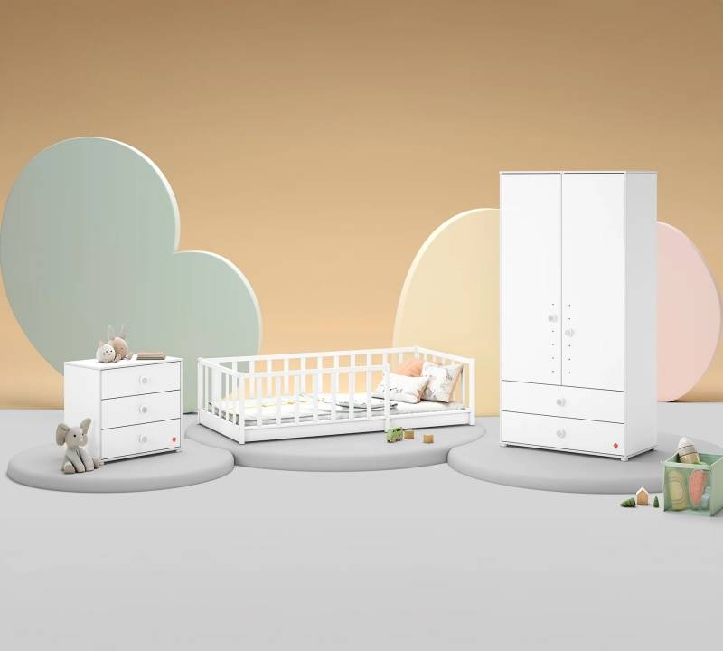 Colecția Montes Baby White – mobilier elegant și funcțional, perfect pentru camera copilului. Design minimalist în alb, cu spații de depozitare generoase, ideal pentru organizarea hainelor și accesoriilor. Potrivit atât pentru băieți, cât și pentru fete, pentru un decor modern și curat!