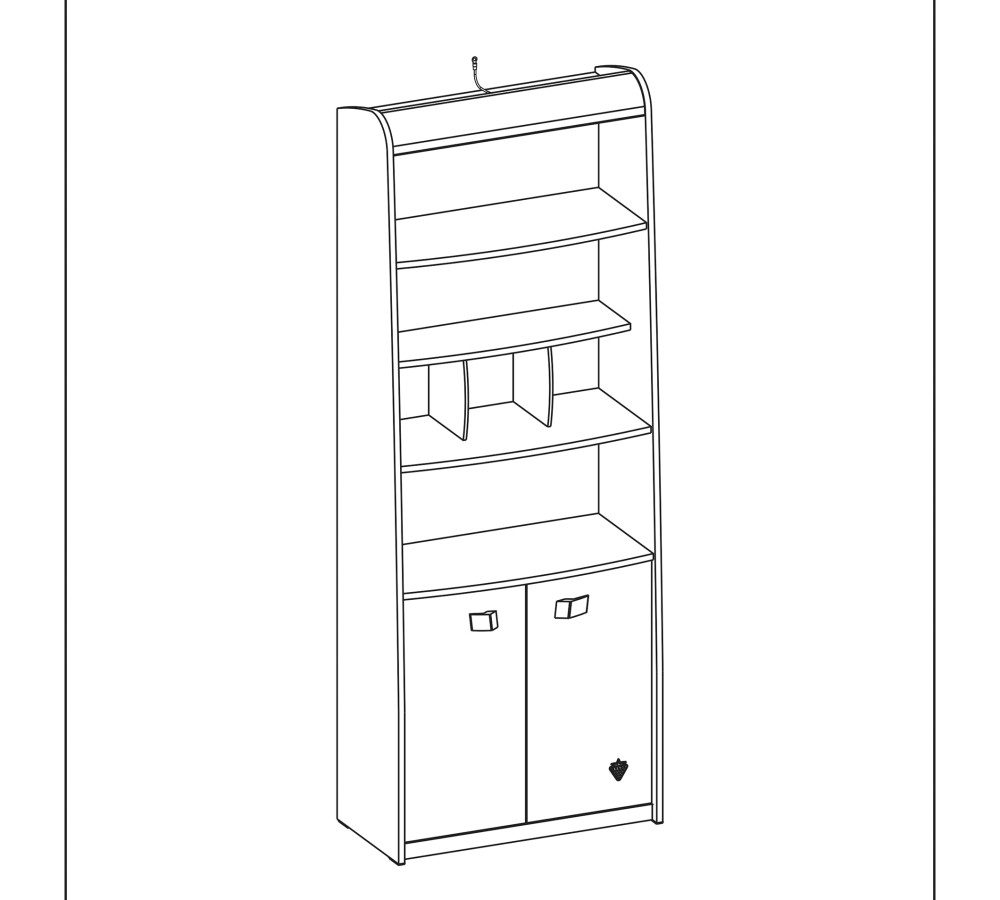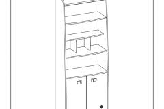 Bibliotecare are doua usi, rafturi si 6 compartimente.