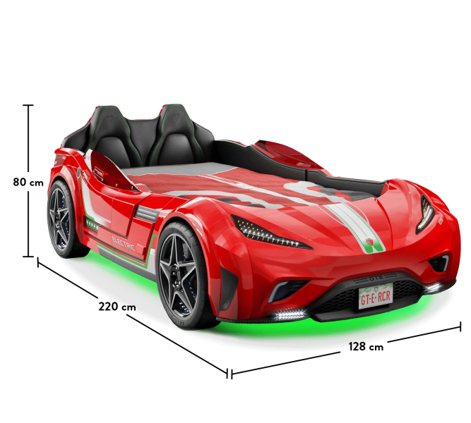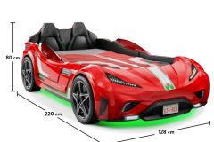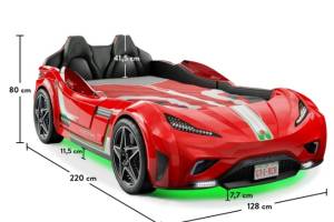 Patul contine tăblie în formă de scaun de maşină din piele ecologică.