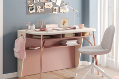 Birou modern cu picioare metalice si incarcare wireless, ideal pentru spatii de studiu. Compatibil cu toate unitatile de birou Elegance, ofera stil si functionalitate.