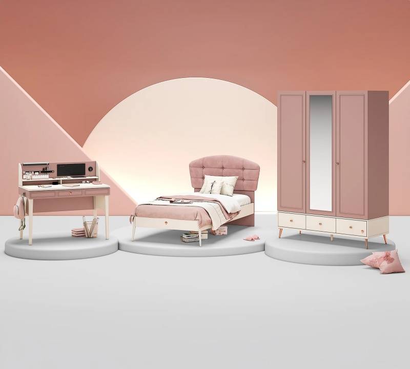Colecția ELEGANCE impresionează prin designul său elegant și atemporal, în nuanțe de roz pudrat închis. Creată pentru un decor sofisticat și rafinat, această colecție oferă mobilier practic și estetic, perfect pentru un spațiu modern și primitor. Ideală pentru un dormitor cu stil!