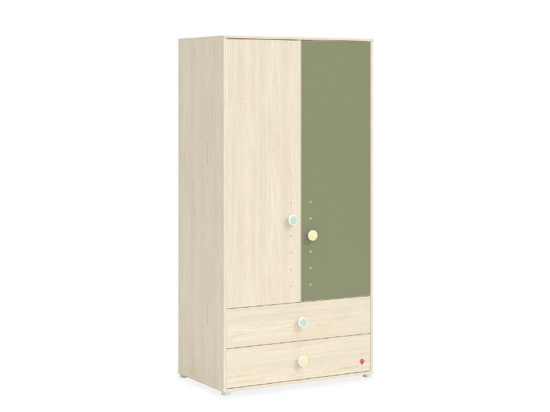 Rafturile și umerașele din garderobă sunt concepute în funcție de înălțimea copilului, de raporturile de vârstă si cu un sistem mobil aleatoriu în trei etape.