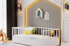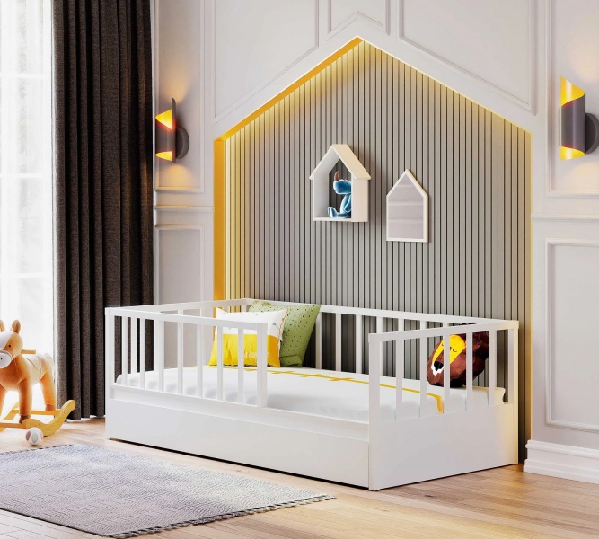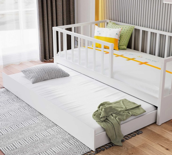 Glisarea patului se realizeaza usor cu ajutorul rotilor de miscare.