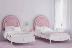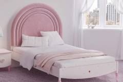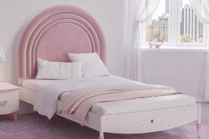 Patul are tablie tapitata din stofa.