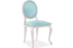 Scaunul este tapitat cu material textil.