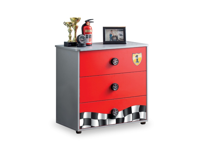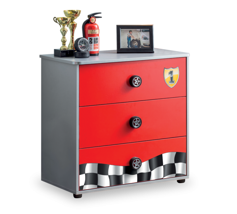 Colecția Racecup – un decor plin de energie și inspirație din lumea curselor auto. Include mobilier funcțional și vibrant, cum ar fi birouri, rafturi și accesorii, toate în culori dinamice de roșu și negru. Ideală pentru a crea o cameră tematică, perfectă pentru micii pasionați de viteză și aventură!