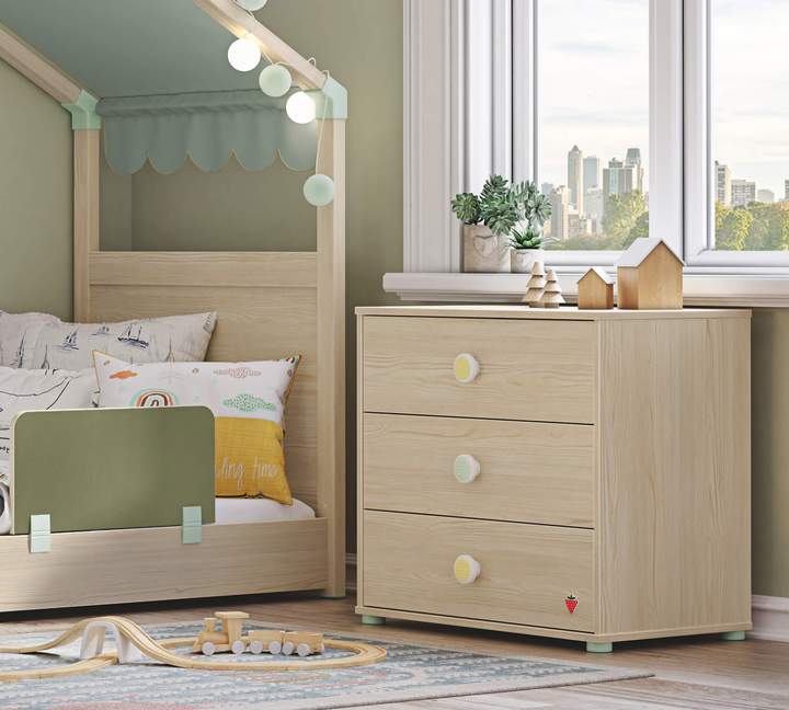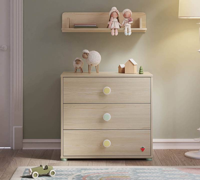 Comoda MONTES NATURAL, în culoarea Natur, adaugă eleganță și funcționalitate oricărui spațiu. Dispune de ușă și sertare cu sistem soft-close pentru utilizare silențioasă, iar polița interioară oferă spațiu generos pentru organizare. Ideală pentru un decor modern și practic.