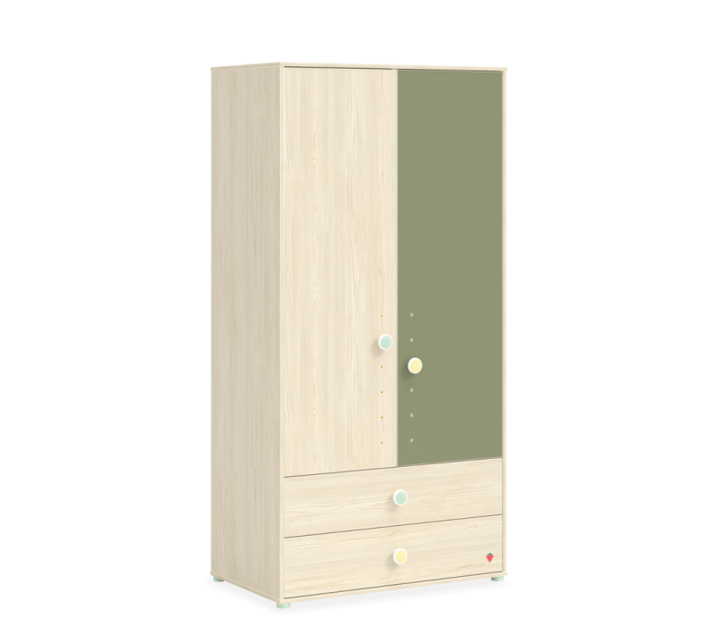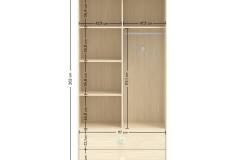 Rafturile și umerașele din garderobă sunt concepute în funcție de înălțimea copilului, de raporturile de vârstă si cu un sistem mobil aleatoriu în trei etape.