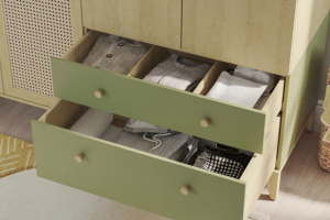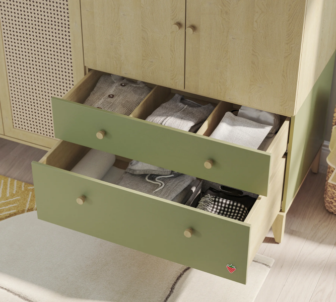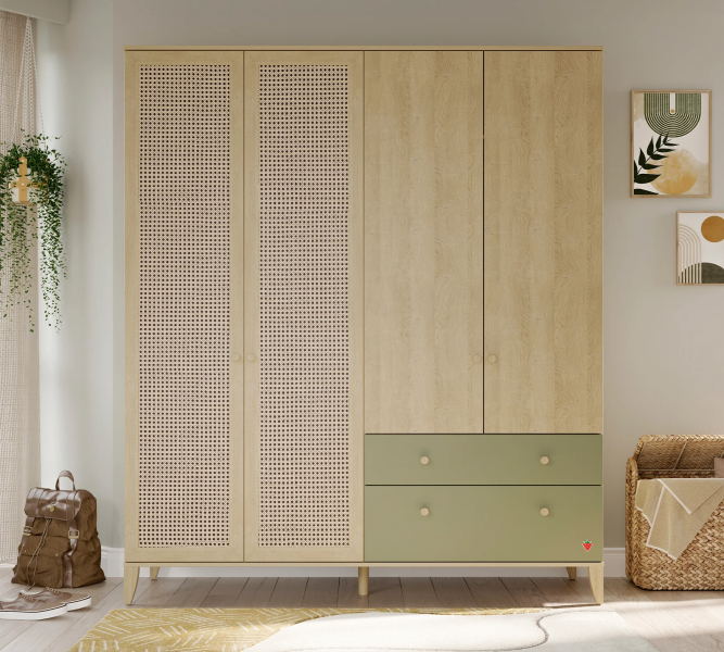 Colectia LOOF BABY - naturalete si functionalitate pentru camera copilului tau! Design modern cu elemente din lemn si detalii rafinate, oferind spatiu generos pentru depozitare. Creeaza un ambient cald si organizat cu aceasta colectie versatila. Descopera acum!