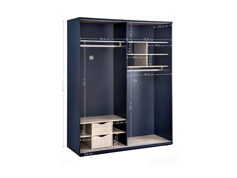 Colectia Trio: dormitor modern în nuanțe de natur/ albastru inchis cu finisaje de lemn, perfect pentru un stil contemporan. Designul simplu, dar funcțional, oferă confort și organizare, adaptându-se nevoilor adolescentului tău. Creează un spațiu armonios și personalizat!