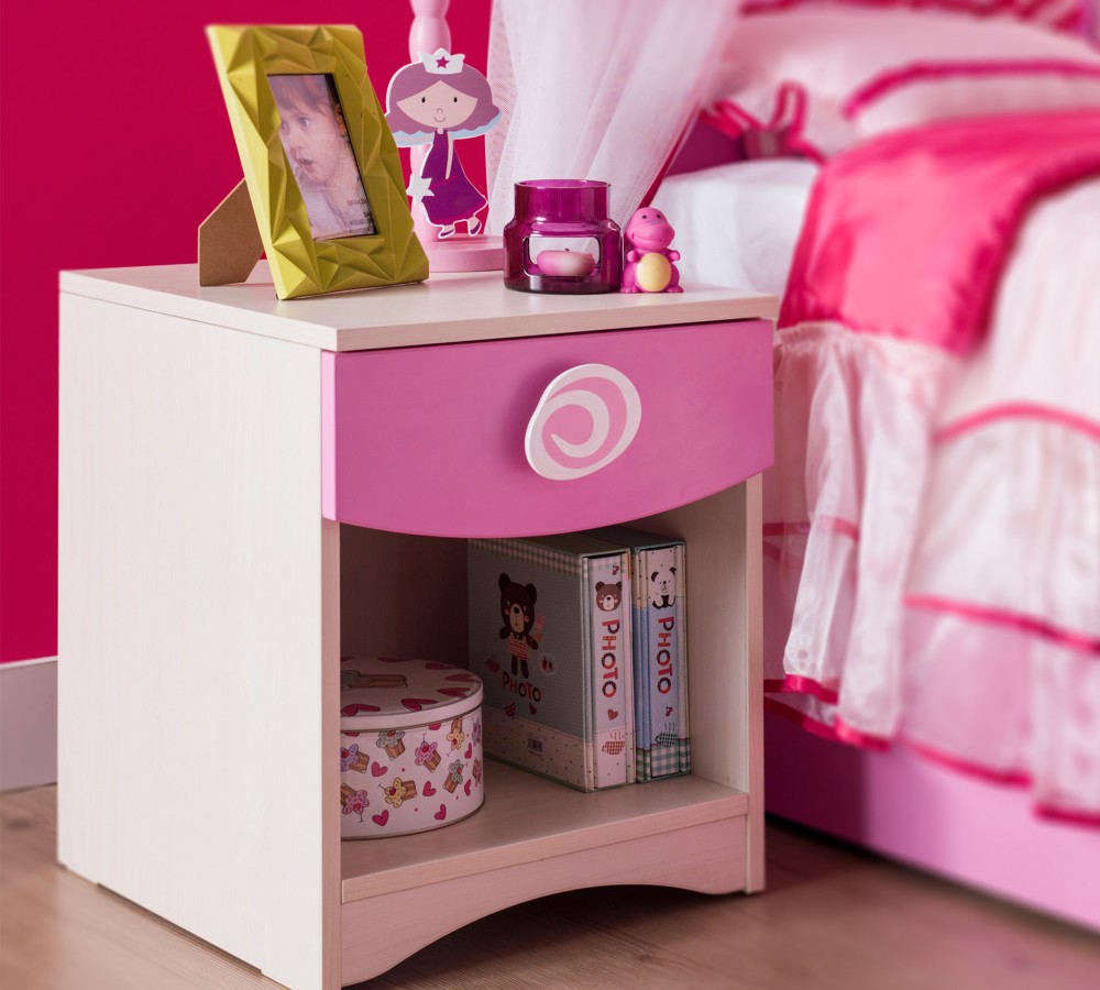 Colțurile noptierei sunt rotunjite pentru siguranta copilului.