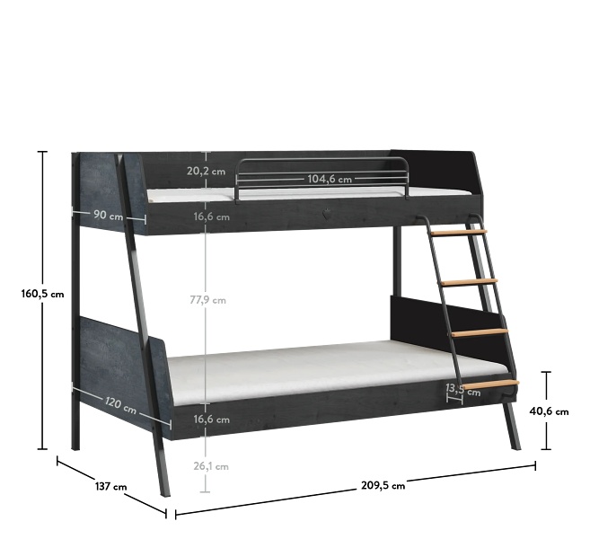 Pat supraetajat (90x200-120x200cm) DARK METAL
