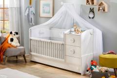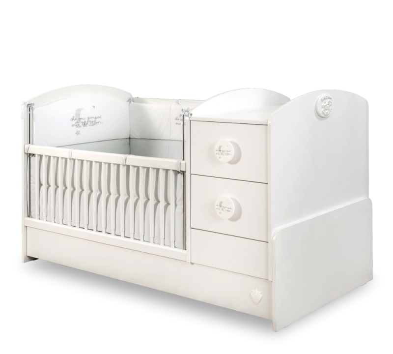 Patutul transformabil Baby Cotton are o utilitate indelungata putand fi transformat in pat pentru o persoana si o comoda cu sertare.