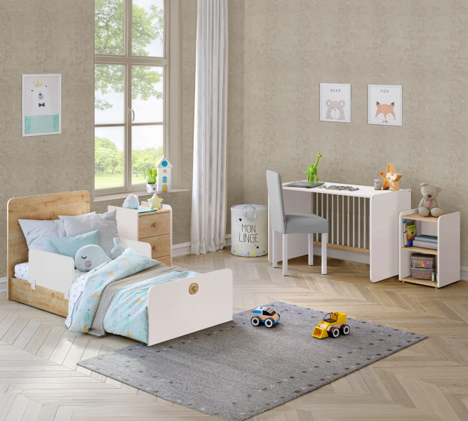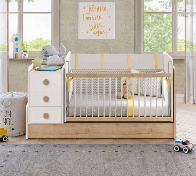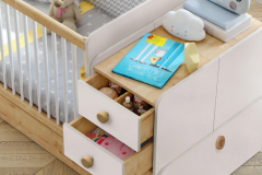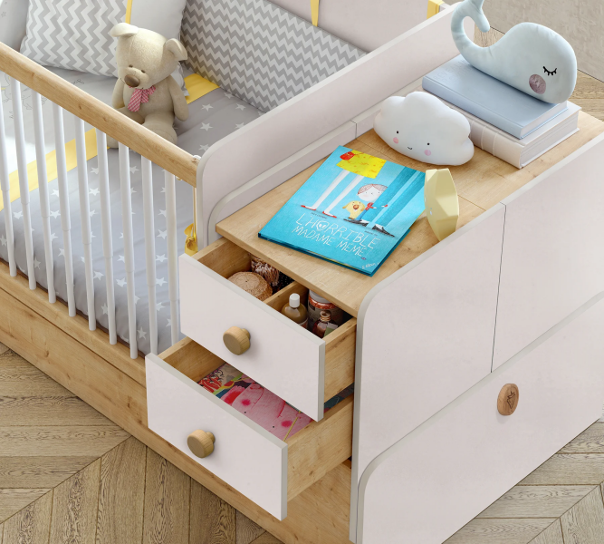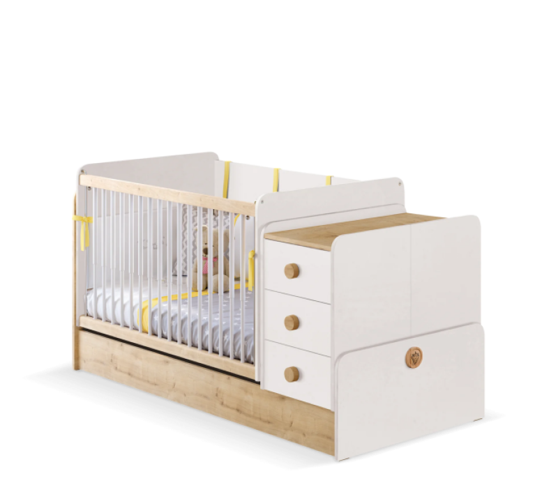 Patutul transformabil are o utilitate indelungata putand fi transformat in pat pentru o persoana si o comoda cu sertare.