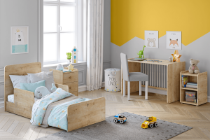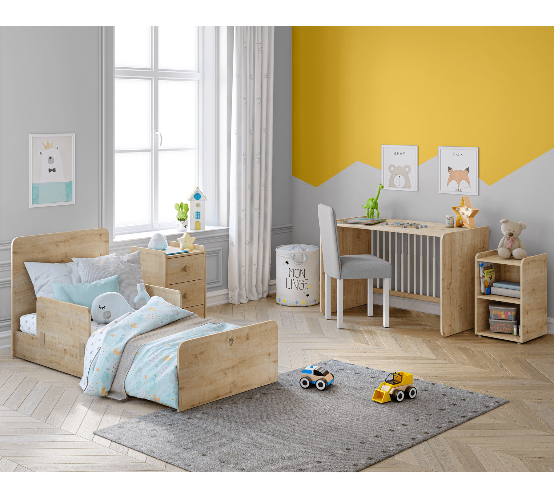 Acesta mai poate fi utilizat pe o perioada mai lunga de timp, transformandu-se intr-un pat pentru o persoana si doua noptiere.