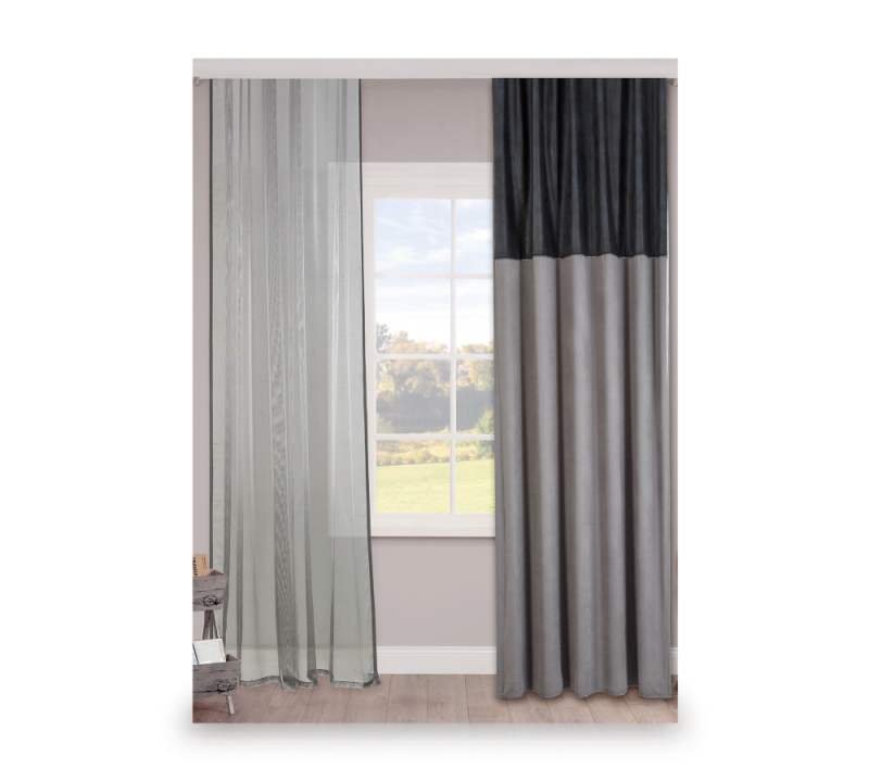 Perdea DARK, gri si negru, eleganta si moderna, perfecta pentru orice incapere. Confectionata din 100% poliester, ofera rezistenta si intretinere usoara. Ideala pentru un decor rafinat si protectie impotriva luminii. Alege calitatea si stilul pentru casa ta!
