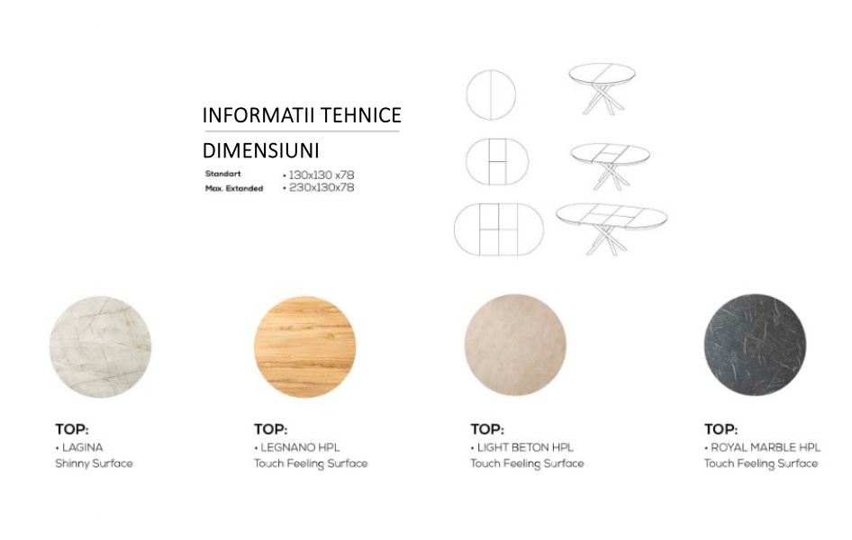 Materiale folosite la productie: MDF cu efect de marmura, metal, HPL