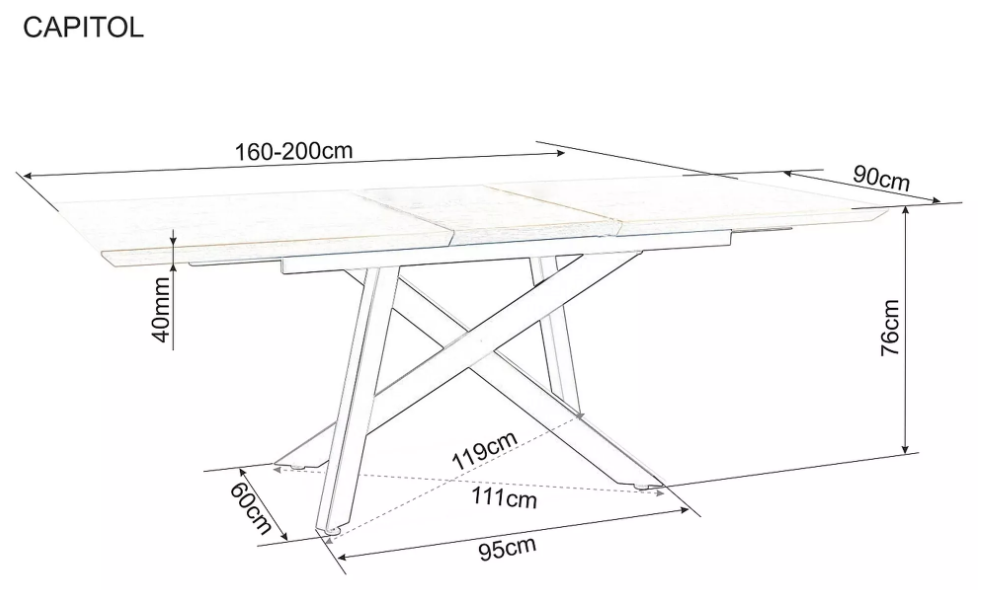Masa extensibila CAPITOL din MDF si furnir stejar, metal negru 160-200x90xH76cm