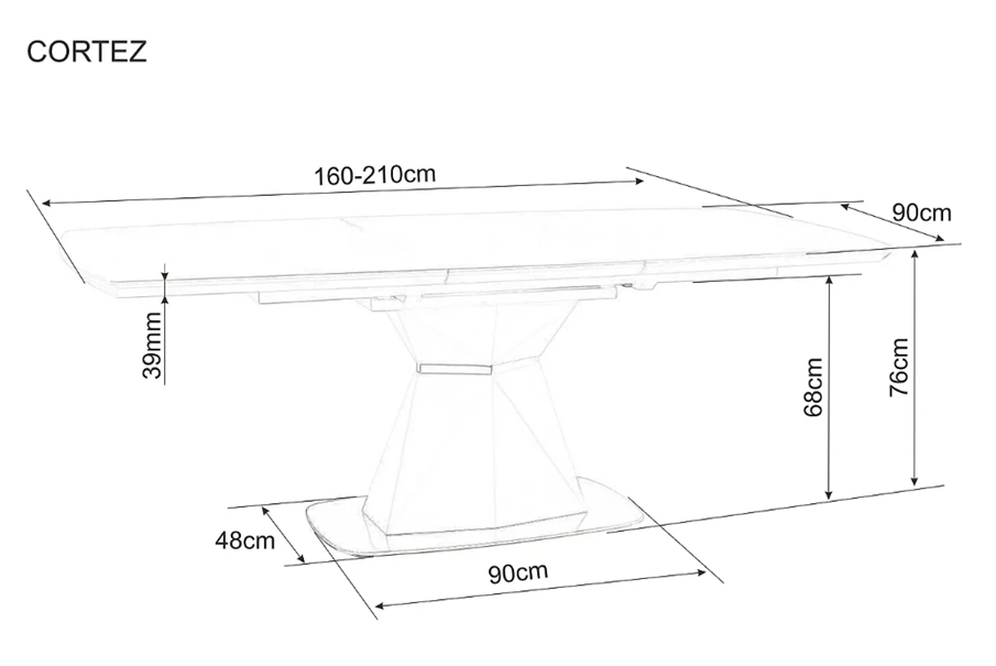 Masa extensibila CORTEZ CERAMIC din MDF si ceramica cu efect de marmura gri 160-210x90xH76cm