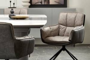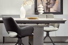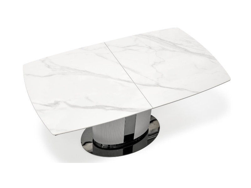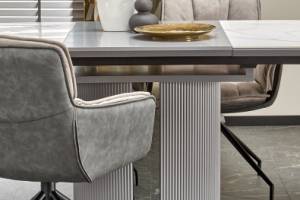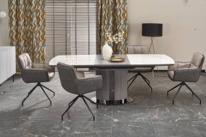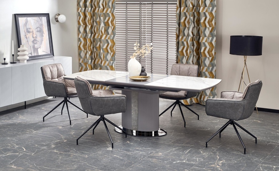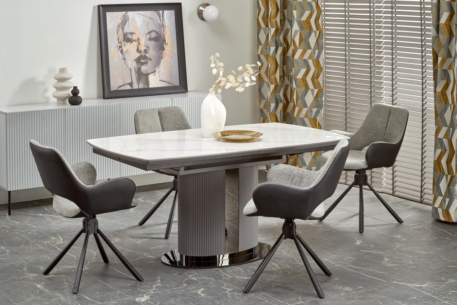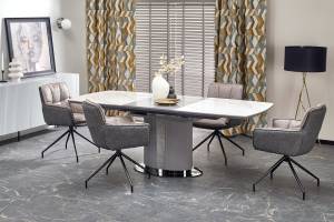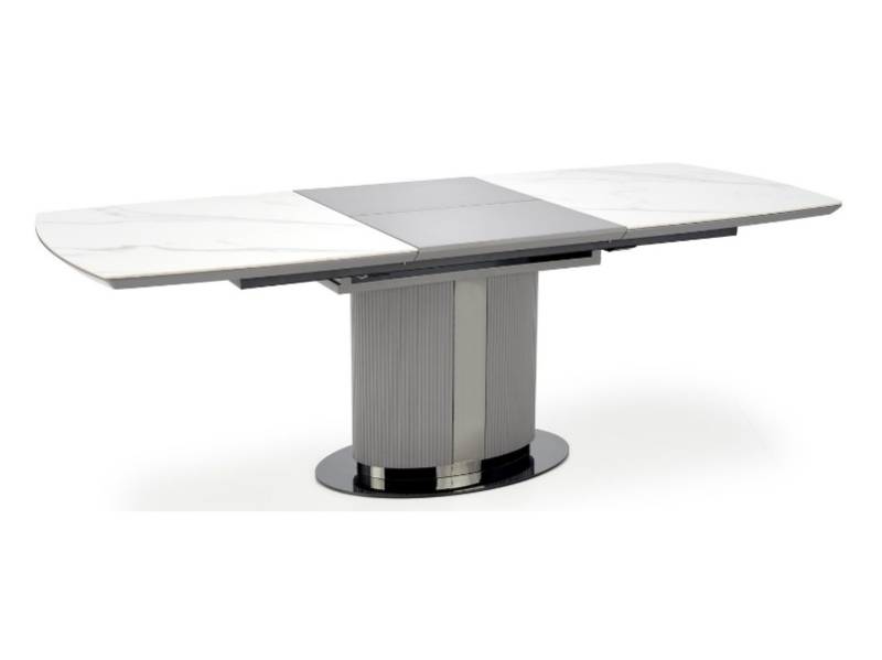 Masa extensibila DANCAN din ceramica cu efect de marmura alba, MDF gri 160-220x90xH76cm