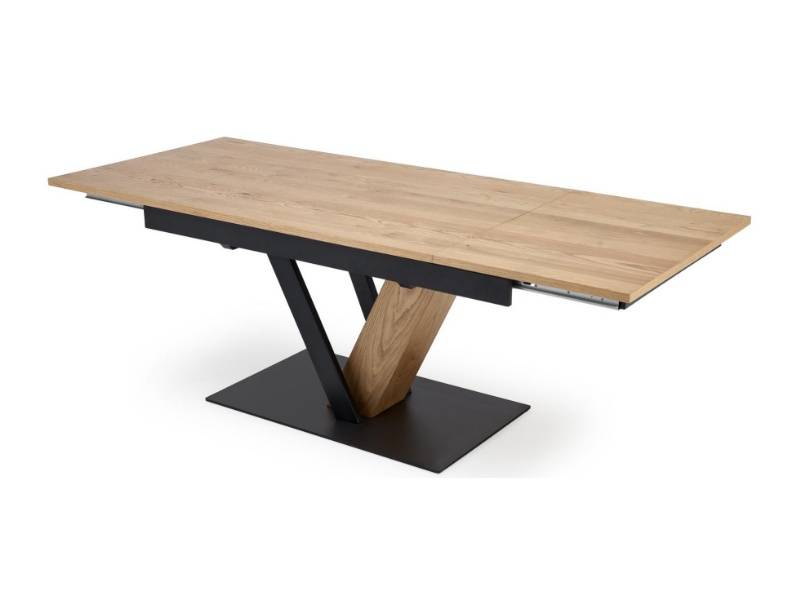 Masa extensibila FANIS din MDF si furnir natural stejar, metal negru/ natural 160-220x90xH78cm
