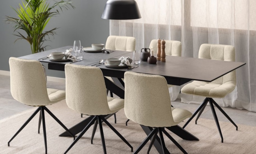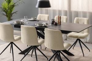 Masa extensibila GALATI DARK MARBLE din ceramica cu efect de marmura neagra 168-210x90xH76cm