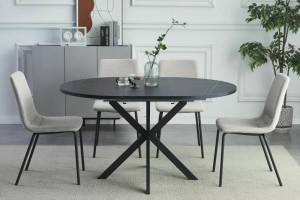 Masa extensibila GASTON BLACK 100 din MDF cu efect de marmura neagra, metal negru 100-135xH76cm