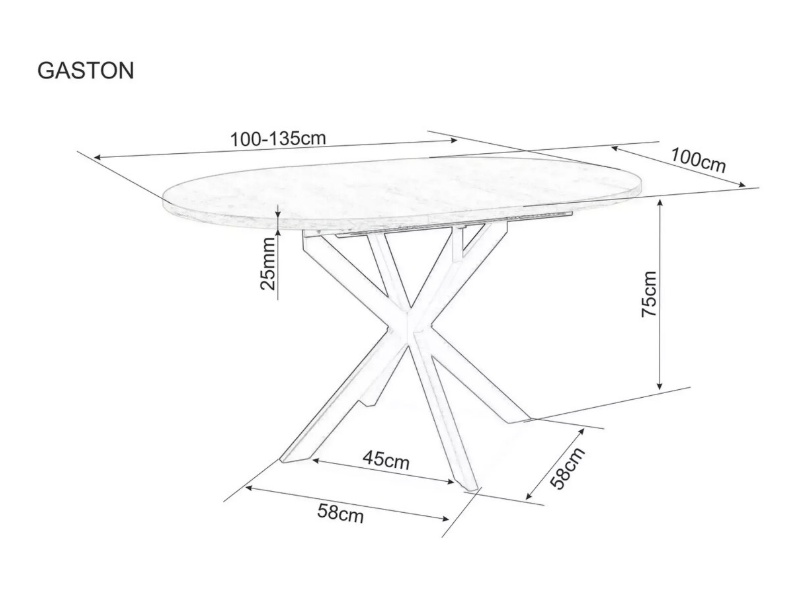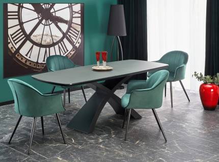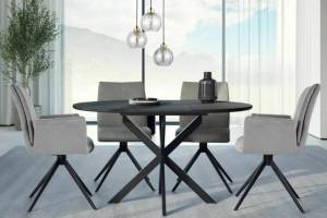 Masa extensibila GASTON CERAMIC BLACK 100 din ceramica cu efect de marmura neagra, metal negru 100-135xH75cm