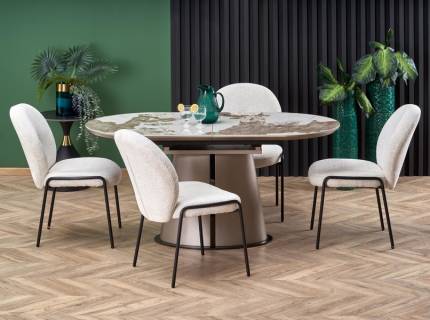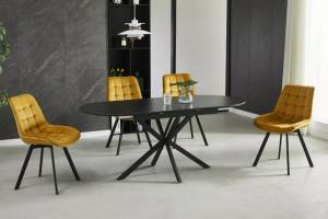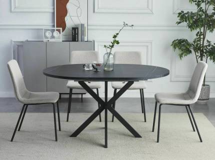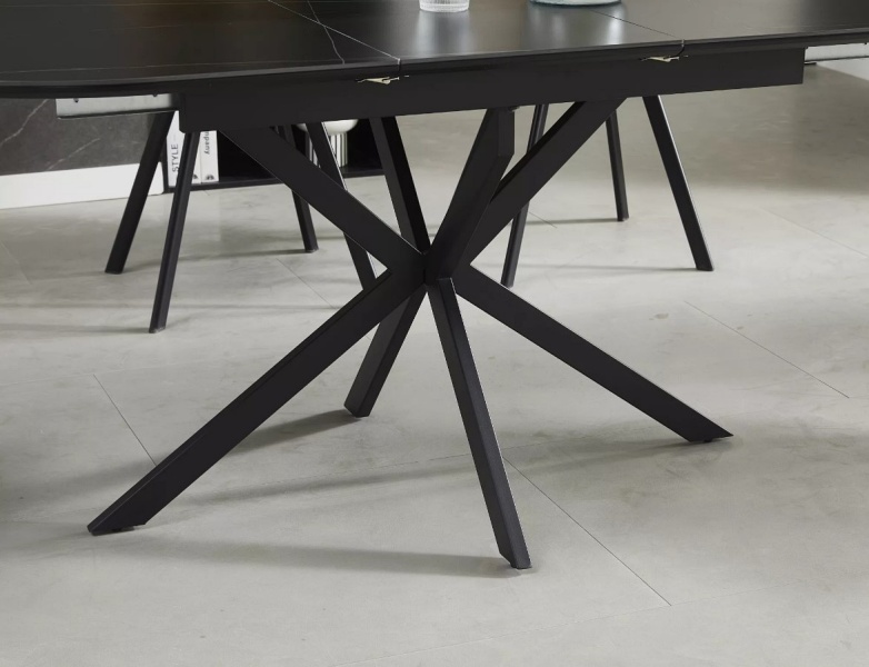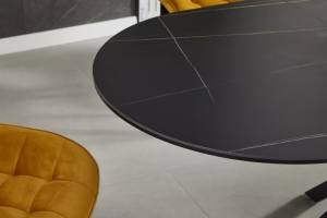 Masa extensibila GASTON CERAMIC BLACK 140 din ceramica cu efect de marmura neagra, metal negru 140-180x80xH75cm
